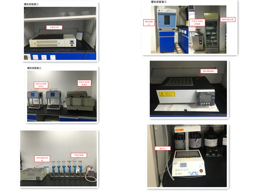 實驗室配備有氣相色譜儀、氣相色譜質譜聯用儀、液相色譜儀、液相色譜質譜連用儀、離子色譜儀、電感耦合等離子發射光譜儀、電感耦合等離子發射光譜質譜儀、火焰原子吸收分光光度計、石墨爐原子吸收分光光度計、原子熒光分光光度計、吹掃捕集水土一體機、全自動頂空進樣器 、全自動高效快速溶劑萃取儀、全自動高通量平行濃縮儀等多種類型的分析儀器設備和輔助設備,共計146臺(套)。