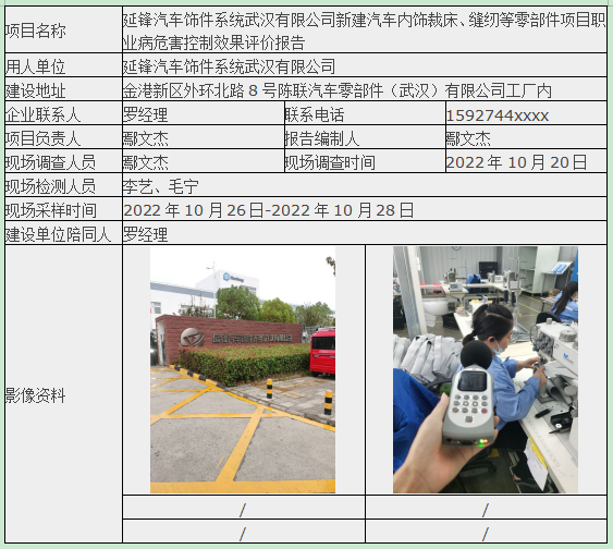 延鋒汽車飾件系統武漢有限公司新建汽車內飾裁床、縫紉等零部件項目