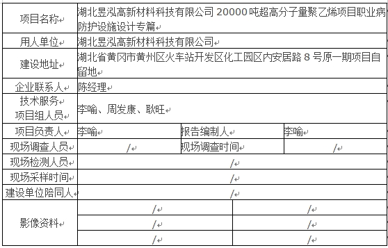 湖北昱泓高新材料科技有限公司20000噸超高分子量聚乙烯項目